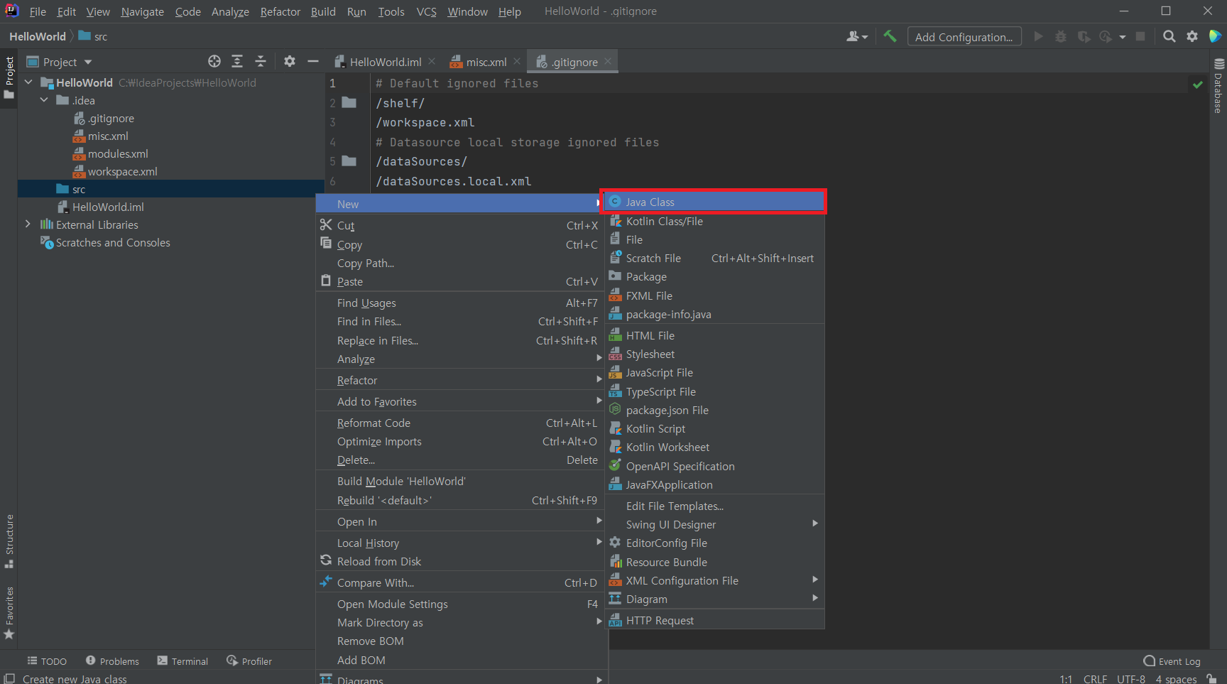 6_1. src 폴더를 우클릭 > New > Java Class를 선택