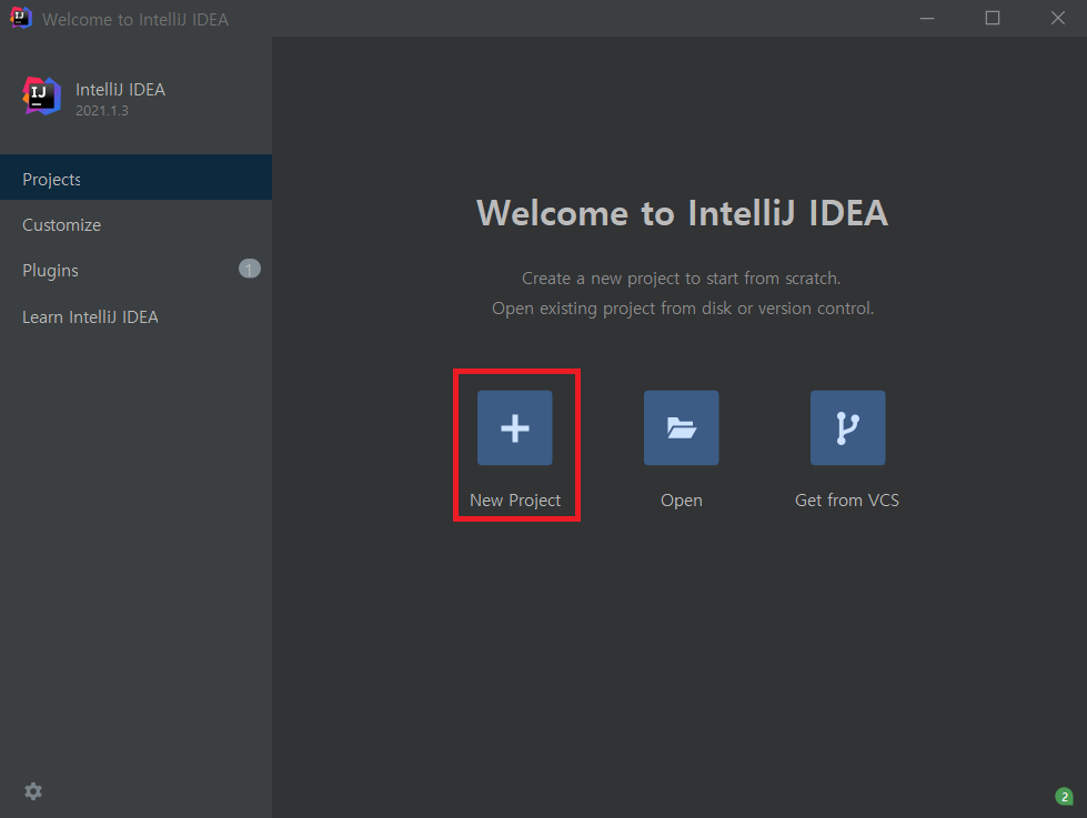 1. 'Create New Project' 버튼을 클릭