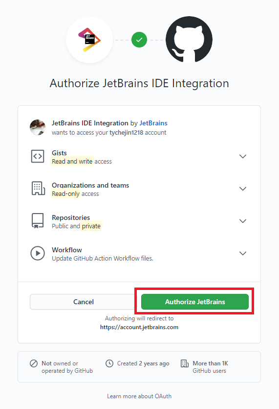 2_4. Authorize JetBrains 클릭