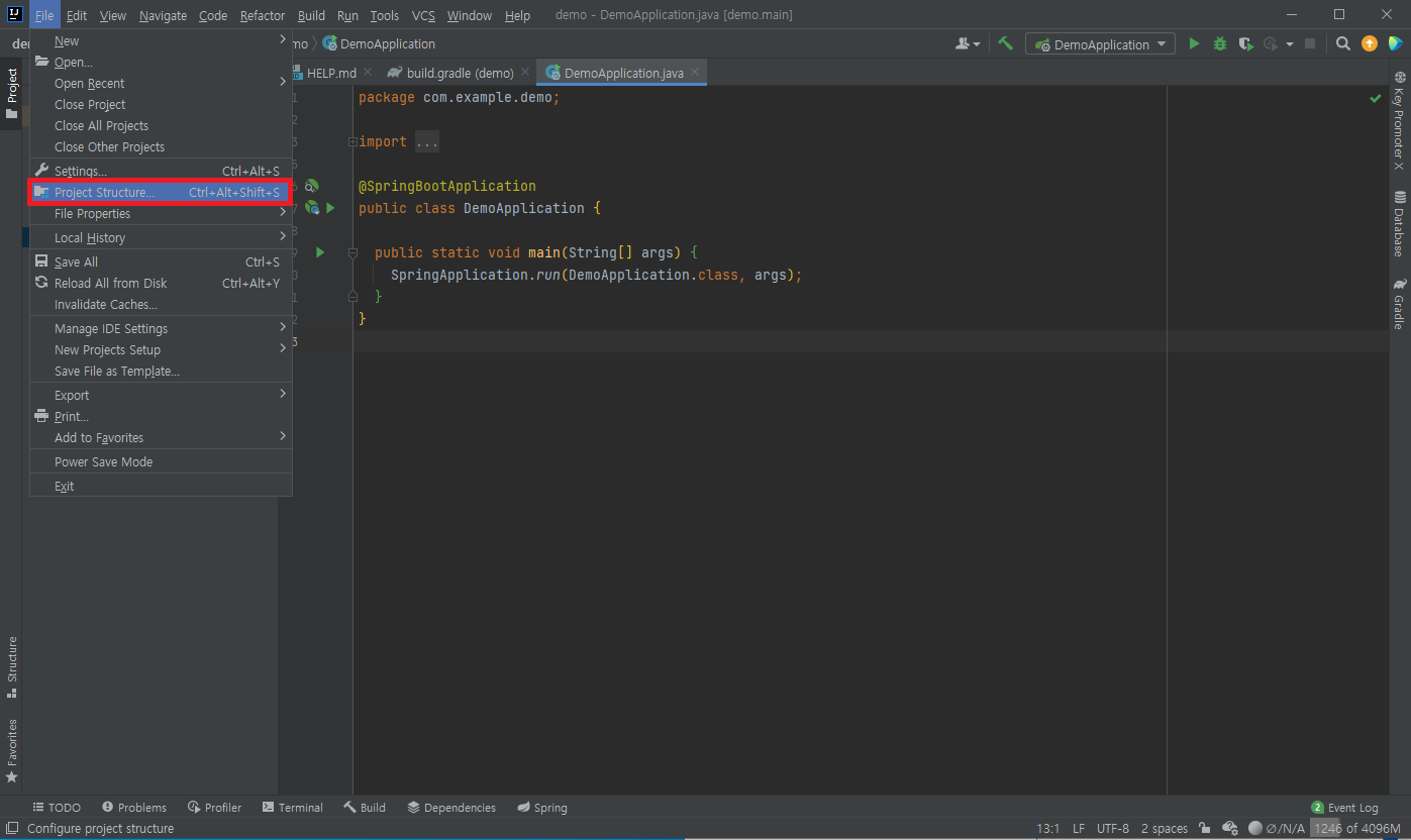 1. File > Project Structure...(Ctrl + Alt + Shift + S) 클릭