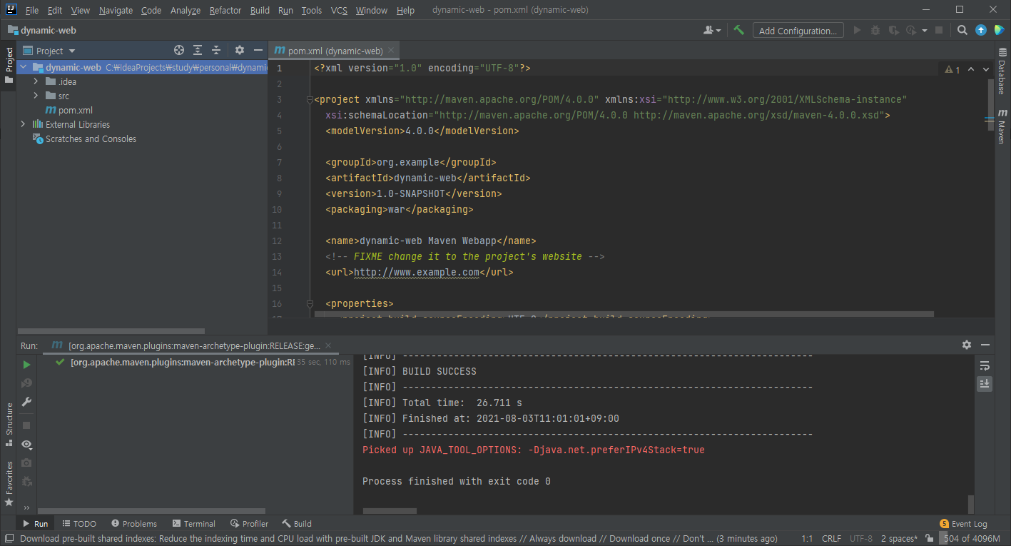 1. 웹 프로젝트(Dynamic Web Project) 생성