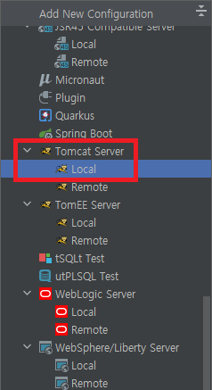 2_3. Tomcat Server > Local 클릭