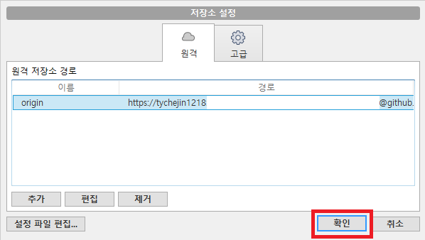 2. 소스트리 > 설정 > 원격 - 계정을 선택한 후 편집을 클릭