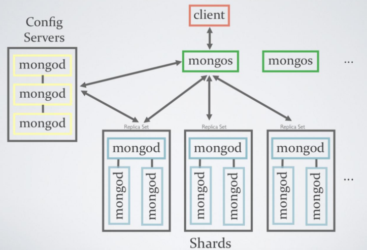 client에서 데이터 입출력을 mongos에게 요청하면 mongos는 Config Servers를 참고하여 각각의 Shards에 분산하여 저장하고, 다시 mongos가 Shard에 분산된 데이터를 합쳐서 전송하는 방식으로 운영MongoDB MapReduce