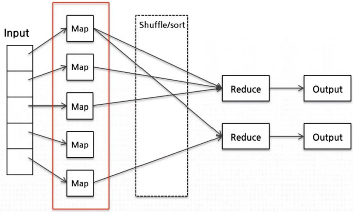 1.대용량에 Input 데이터를 일정한 크기로 나눈 후 각각에 Map 함수가 실행되는 서버로 병렬적으로 분산하여 처리