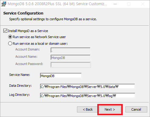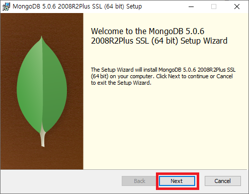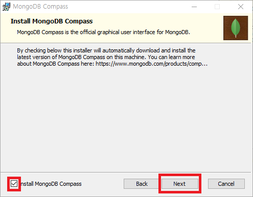 2_5. MongoDB Compass를 설치하려면 'Install MongoDB Compass'를 선택한 후 'Next' 버튼 클릭(기본적으로 선택되어 있음)
