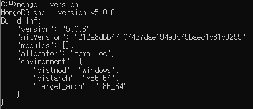 3_3. CMD(명령 프롬프트) 창에서 "mongo --version"을 입력하여 정상적으로 설치되었는지 확인