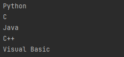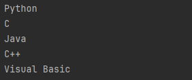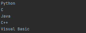 public static void createListToStream() { List<String> list = Arrays.asList("Python", "C", "Java", "C++", "Visual Basic"); Stream<String> stream = list.stream(); stream.forEach(System.out::println); }Console Output
