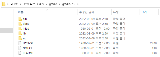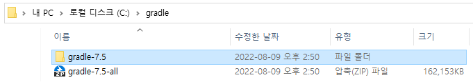 디렉토리(C:\gradle\)를 만들고 다운로드한 압축 파일을 풀어주세요.