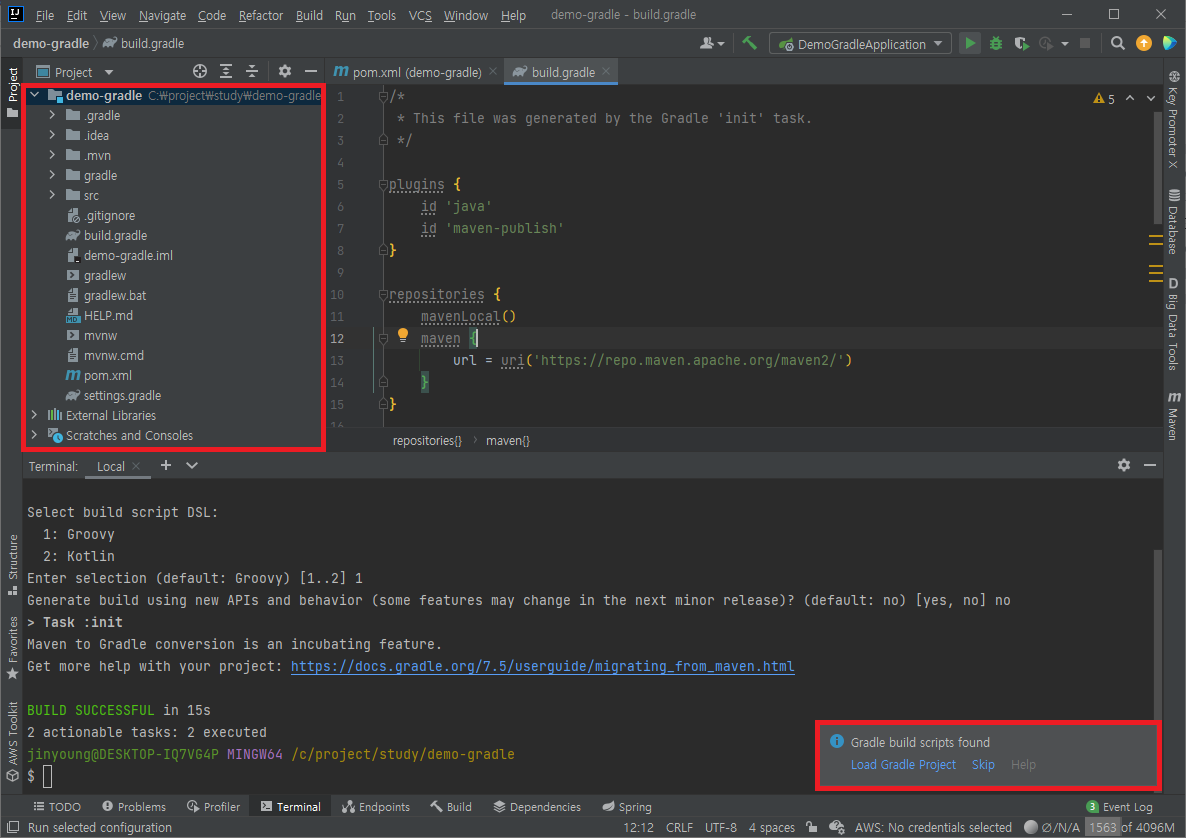 3. Terminal 에서 'gradle init --type pom' 명령어 실행