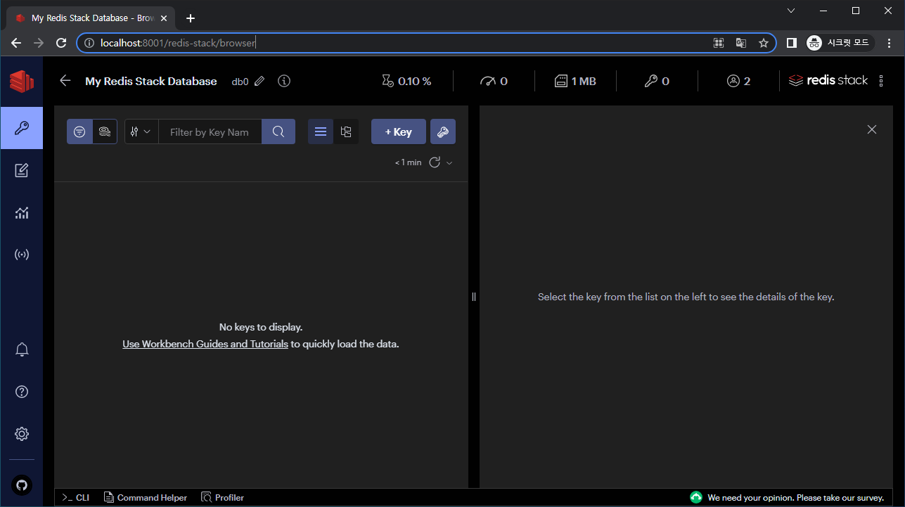 docker run -d --name redis-stack -p 6379:6379 -p 8001:8001 redis/redis-stack:latest포트 6379는 Redis 연결, 포트 8001는 RedisInsight에 사용됩니다.